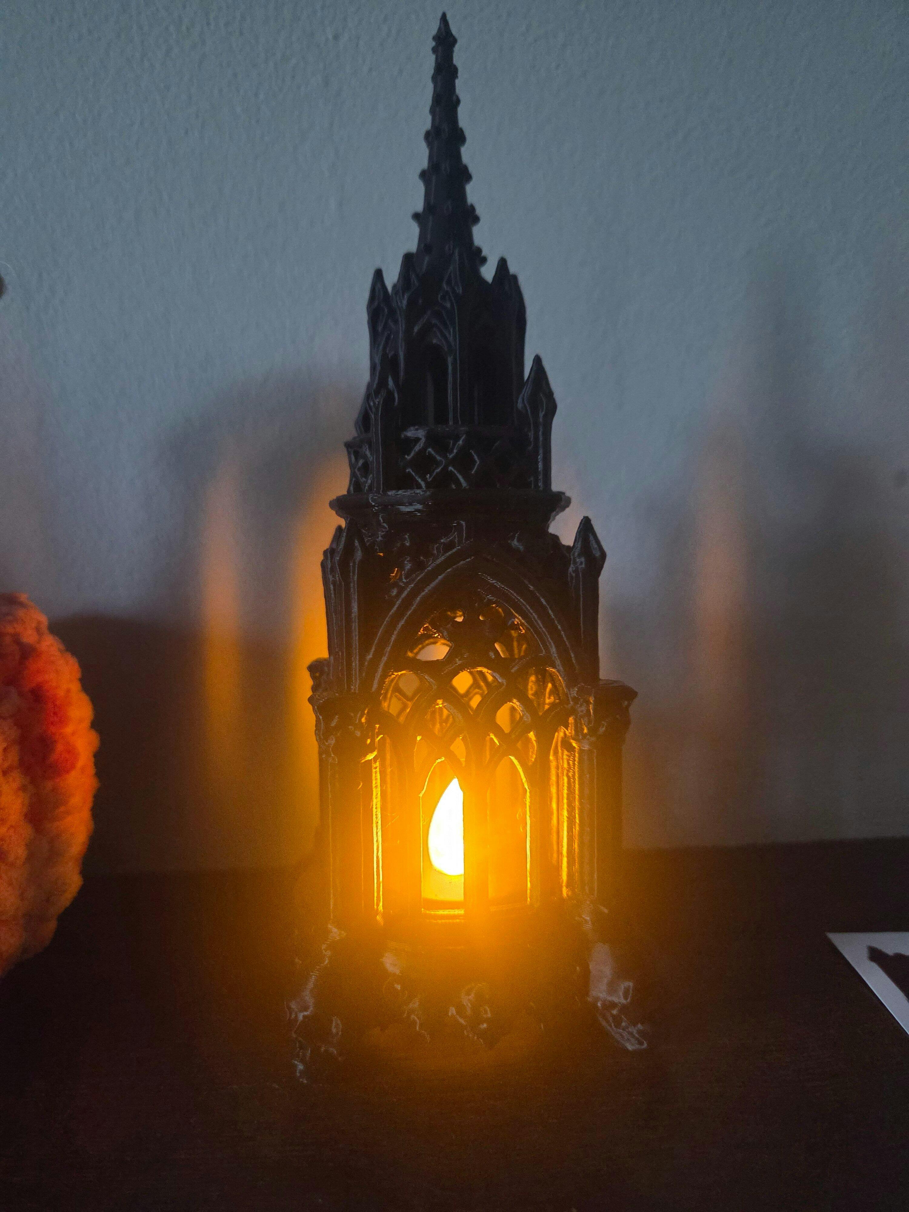 Let the Shadow Spire guide your evenings with its ethereal light, bringing an irresistible charm that whispers of forgotten tales and moonlit nights. It's the perfect accent for your bookshelf, mantelpiece, or sacred space, inviting an aura of sophisticated gothic allure.